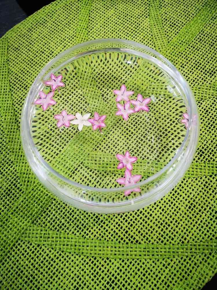星の形のペンタスの花殻を摘んで水に浮かべてみました☆
