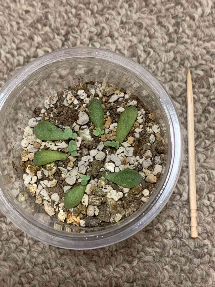 右も左もわからずに初めて葉挿しして、初めて芽が出た子達なので、よくわかりませ〜ん😂😂😂