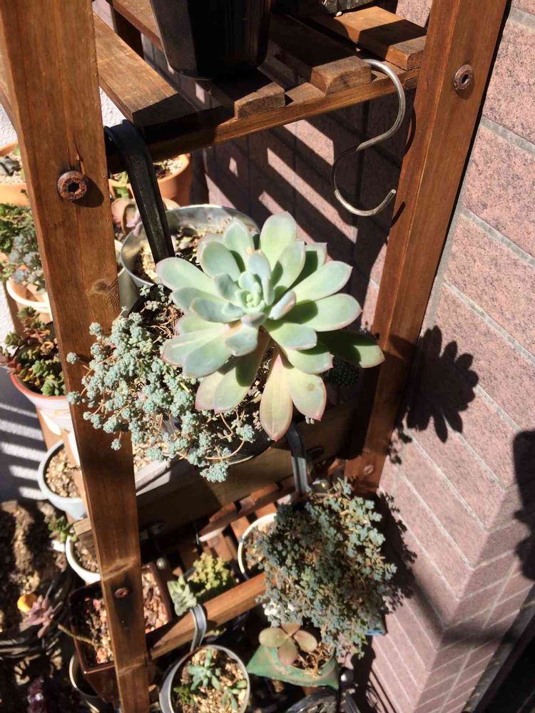 ホームセンターでヒョロヒョロになっているのを連れて帰り、謎多肉だったまんま調べもせずいましたがお日様にいっぱい当てて綺麗になりました(o´∀`)b