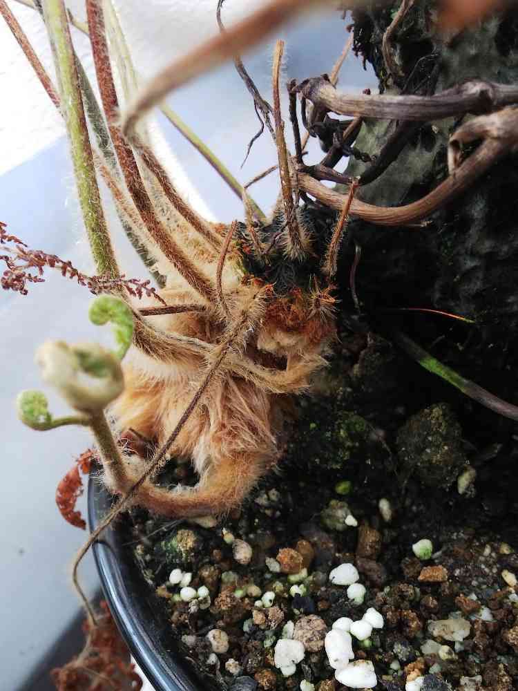 さん、やはり太いのを切るのは勇気がいりますね。昨日、カツモウイノデを選定しました。だいぶカラっカラの枯れ葉が増えましたからね。ほとんどの枝は委縮していたから問題ないですよね。タカワラビのほうも、極限まで待ってからカットしたいと思います。