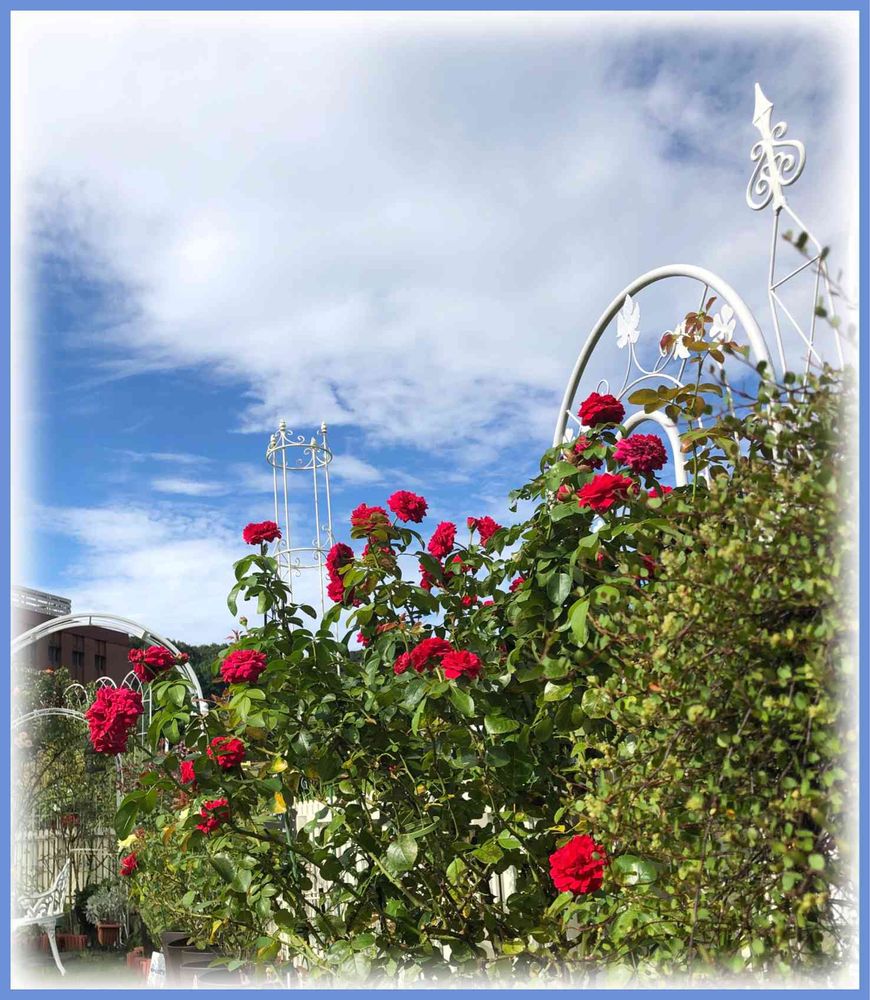 久しぶりの青空だったので、外に出て真っ赤の薔薇さんと空を撮しました。