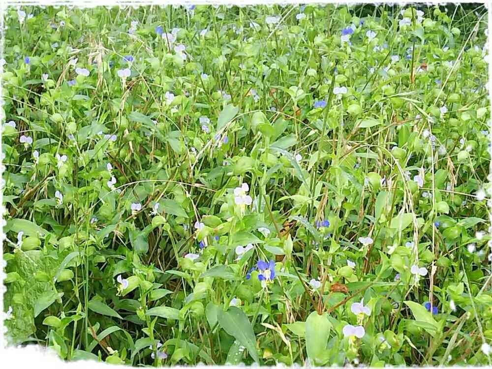 青い露草と薄むらさきの露草が一面に咲いていました🎵