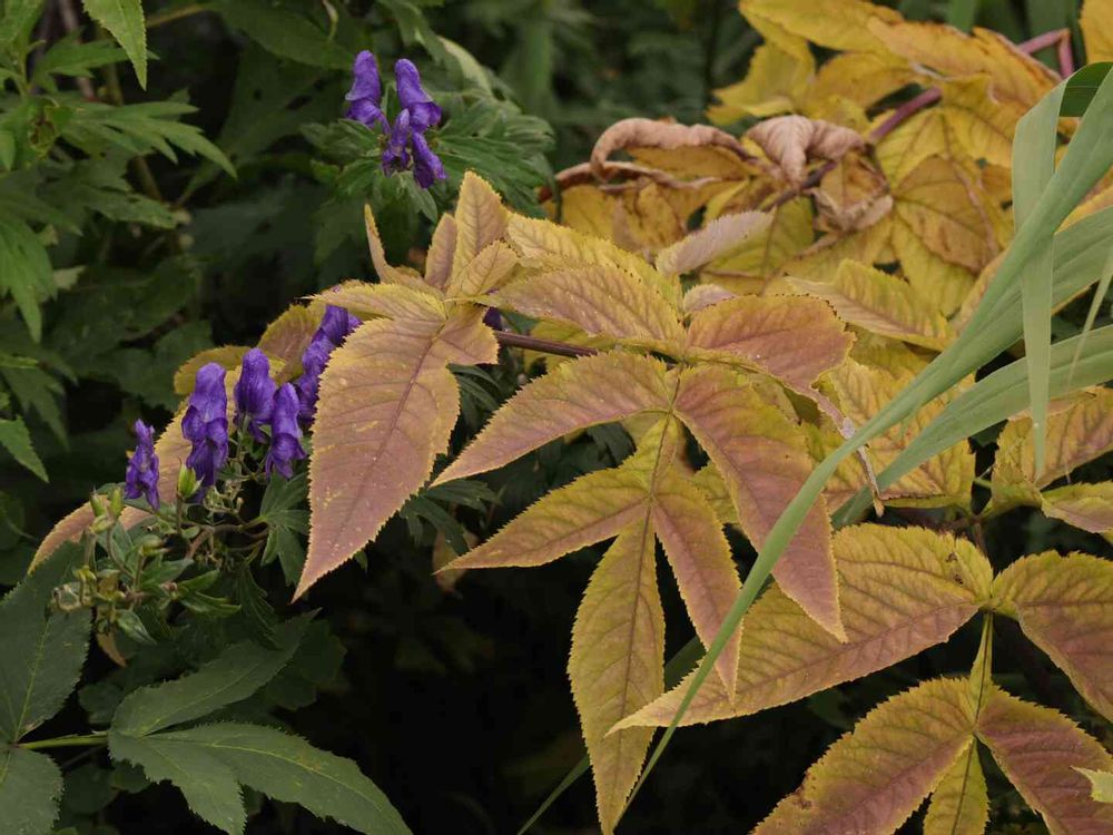 紅葉とトリカブトの青い花✨
