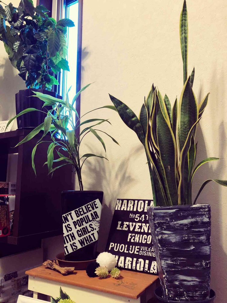 サンセベリアもドラセナも黒系合うなぁ🖤