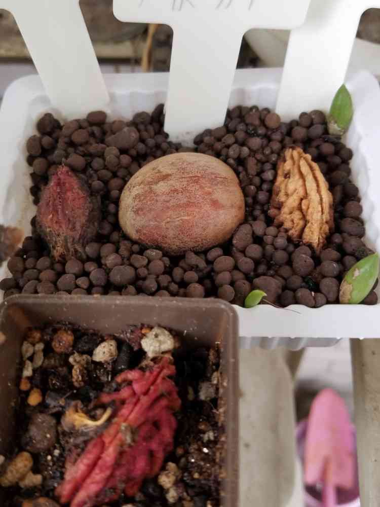 栗は剥かずに一粒植えました😆イガはついてないですよ❤️リンゴは、「黒い米粒のようなの」を植えました😆他の方から聞いたところによると、リンゴは発芽率が低いそうですが、ぜひお試しになって下さいね❤️