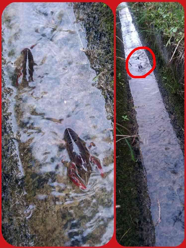 夕方、何気なく庭の外を流れる側溝を見ると下流の方から流れに逆らって何やら2匹、一心不乱に歩いて来るのが見えました🐱