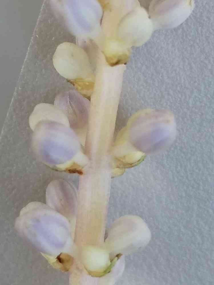 葉っぱは竜のひげの様で40センチ位、花は葉っぱより短いので、埋もれてます。