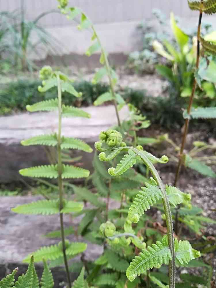 庭に生えているシダ。🤗枯れた葉っぱ🌿を除いたら新しい芽✨🆕✨が出てきました。😉