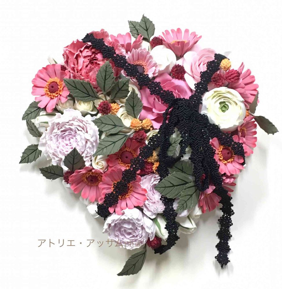 たくさんの春の花を使ってハートの壁飾りを作りました。