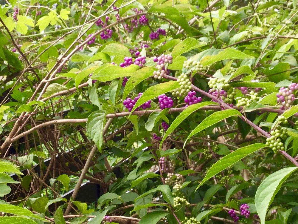 紫式部が色づいて来ました☺️先の方はまだ花が咲いていますが