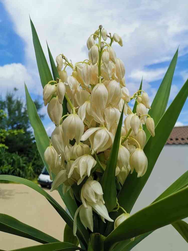 最近、あちらこちらでユッカのお花見かけますね。