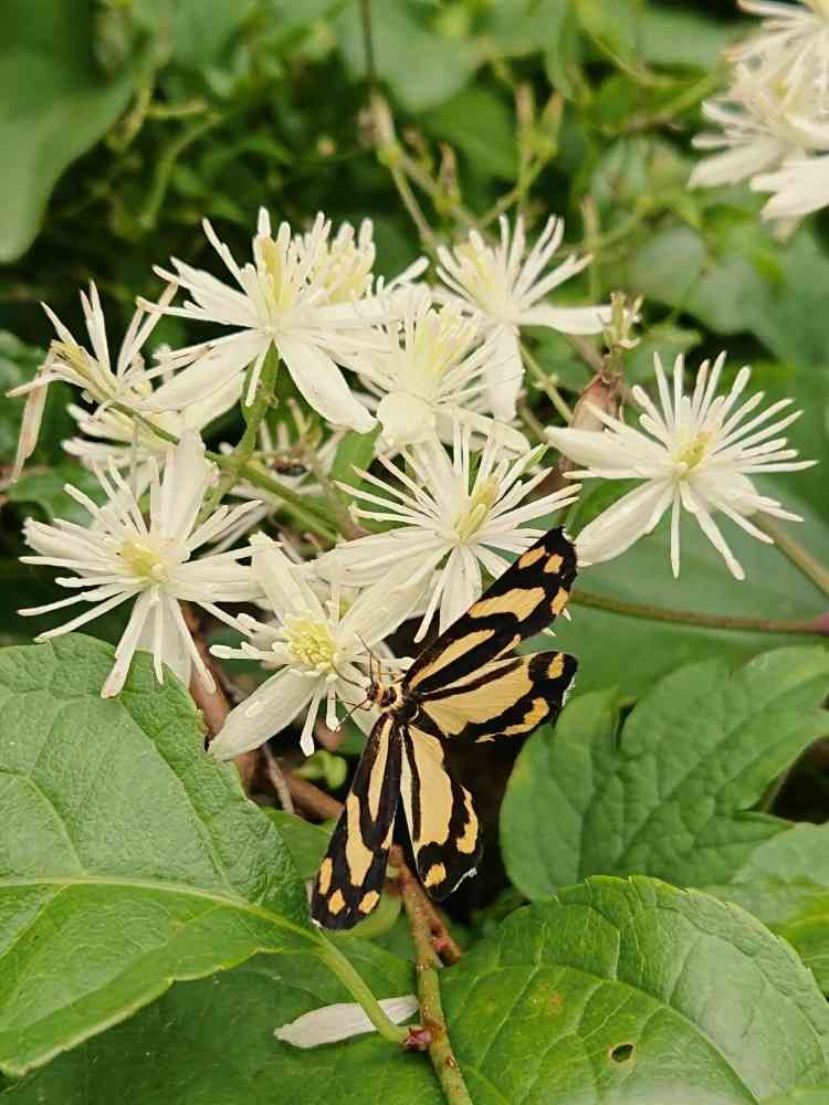この牡丹蔓は高いところに咲いていてよく見えませんでしたが、接客中でした。このお客様、相当お腹が減っていたのか蜜を吸うのに必死で、どれだけスマホを近づけても逃げませんでした🦋