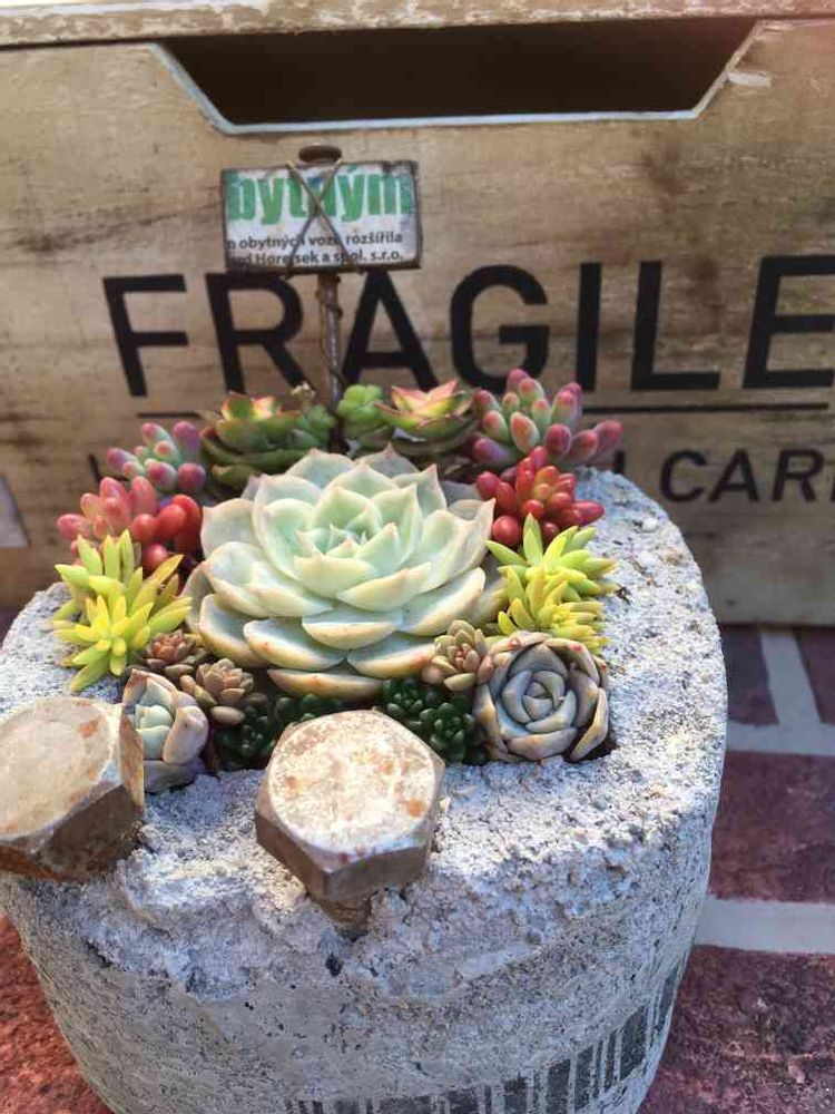 ikuraさんのセメント鉢に寄せ植え💕