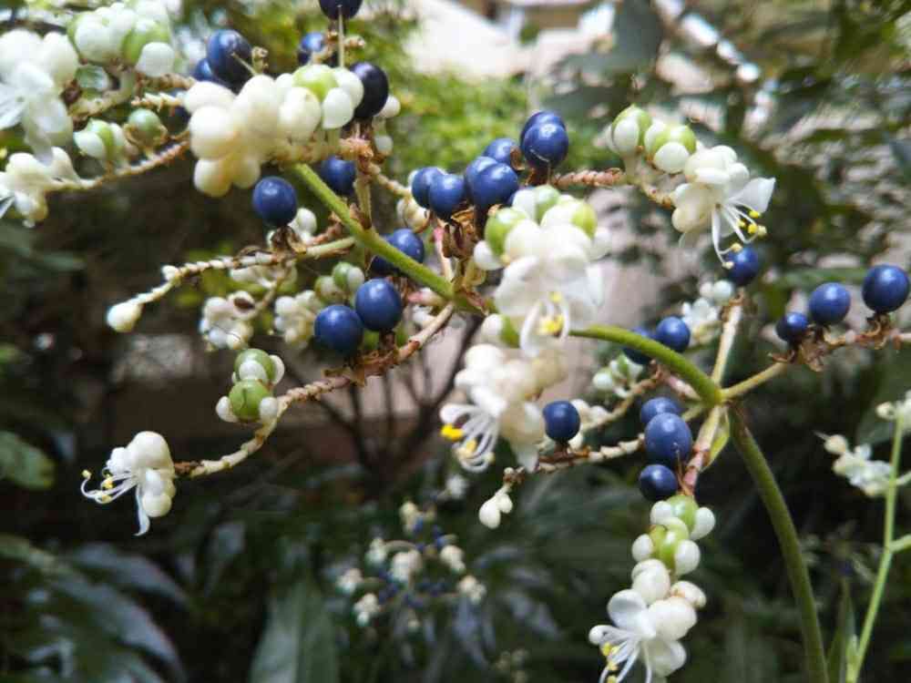 藍色の実に白い花😍 私の好きなカラーの組み合わせ👍👍🎶🎶💕
