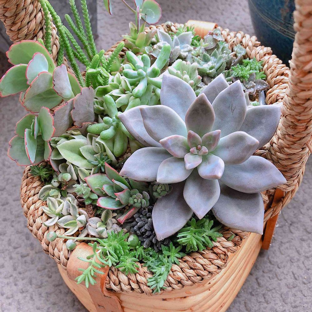先日200円でゲットしてきたカゴに寄せ植えしてみました🤗