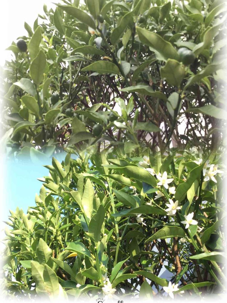 7月末に投稿したキンカンの白い花、やっと青い実発見しました。