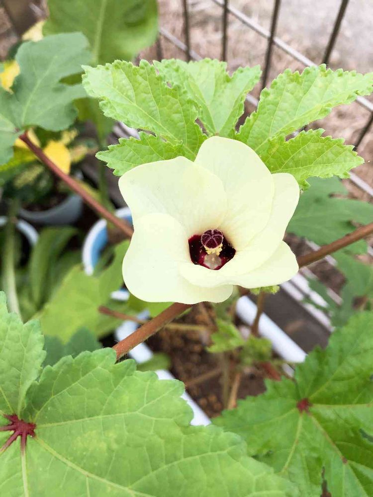 オクラ大好きだけど(食べるの)お花ははじめて見たなぁ〜🌟