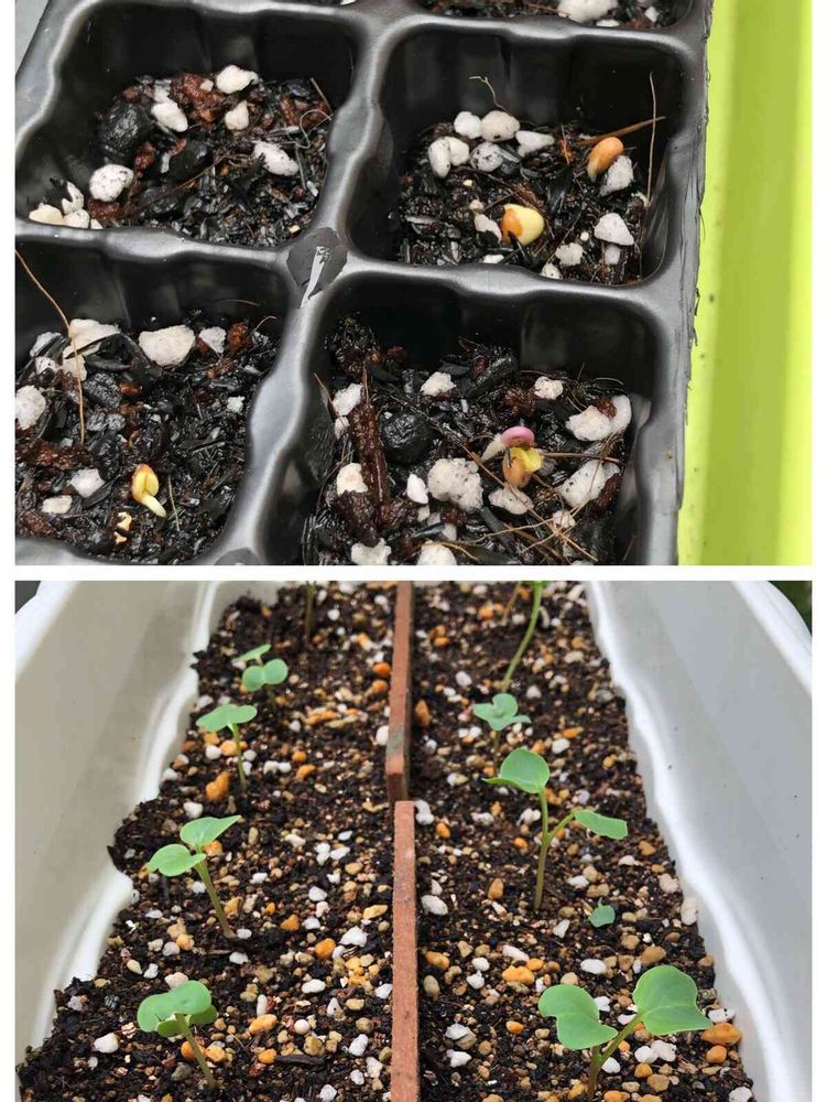 上は2日前に蒔いたもので下が1週間前に蒔いたもの