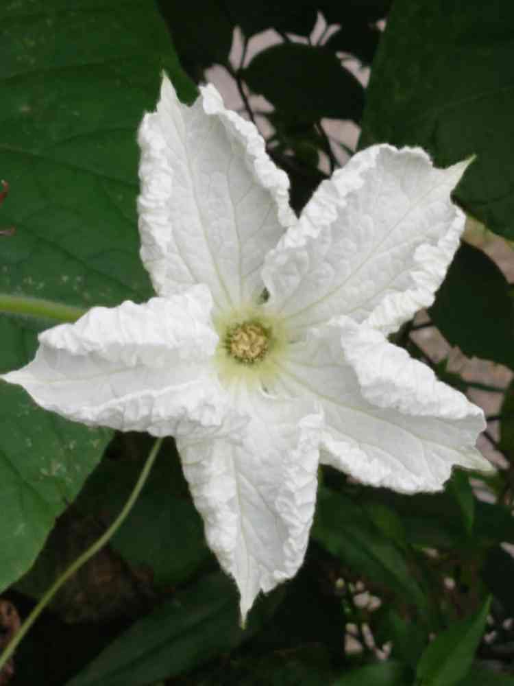 夕顔の花が咲いたちょっと遅いような気がするけど実がなるのかな?