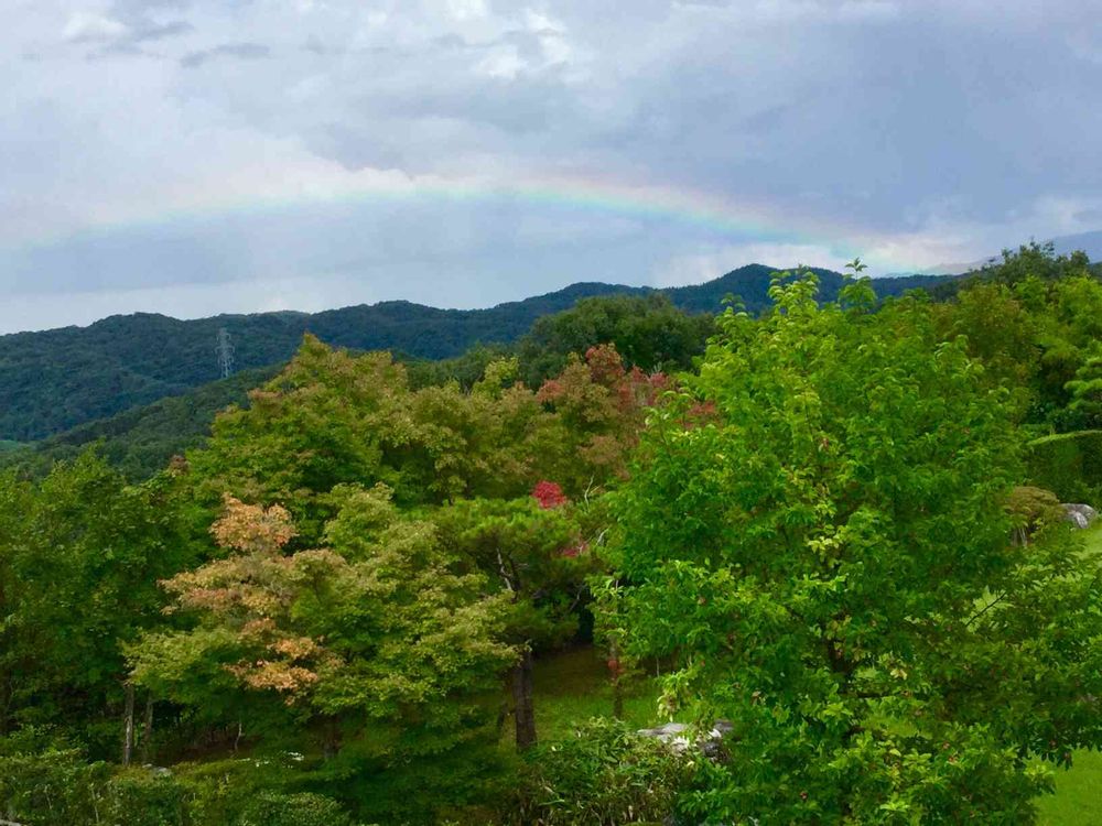 山の稜線の上に大きくてとても綺麗な虹🌈が・・・(’-’*)♪