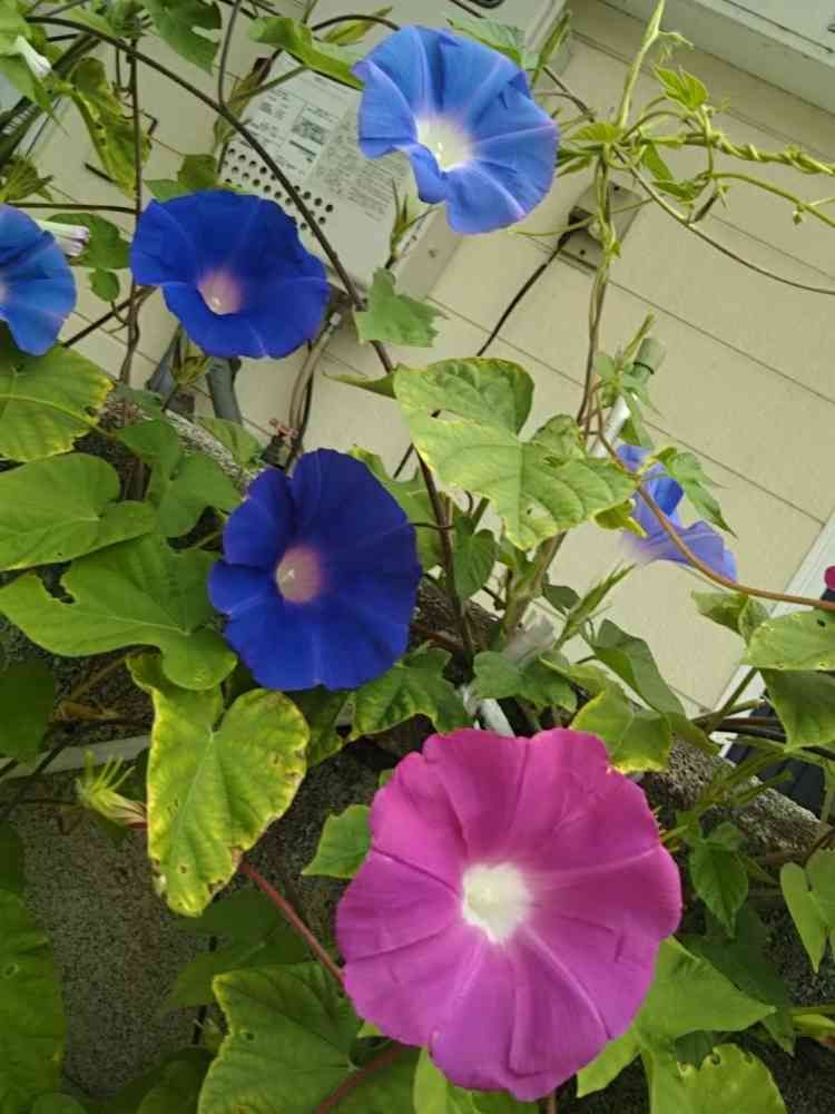 いつもと違う道を散歩していたら、朝顔がまだ元気に咲いてました。もうそろそろ終わりな。