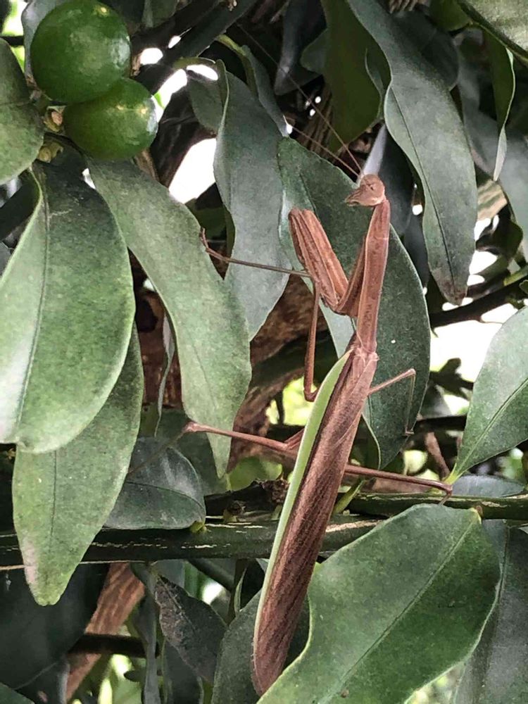 茶色い小型のカマキリさんもいますよ。