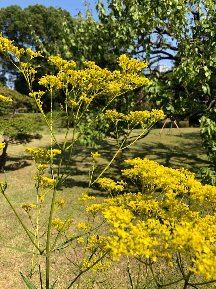 8/17浜離宮恩賜庭園で、会った可愛いらしい黄色いお花さん❣️の私(笑)。