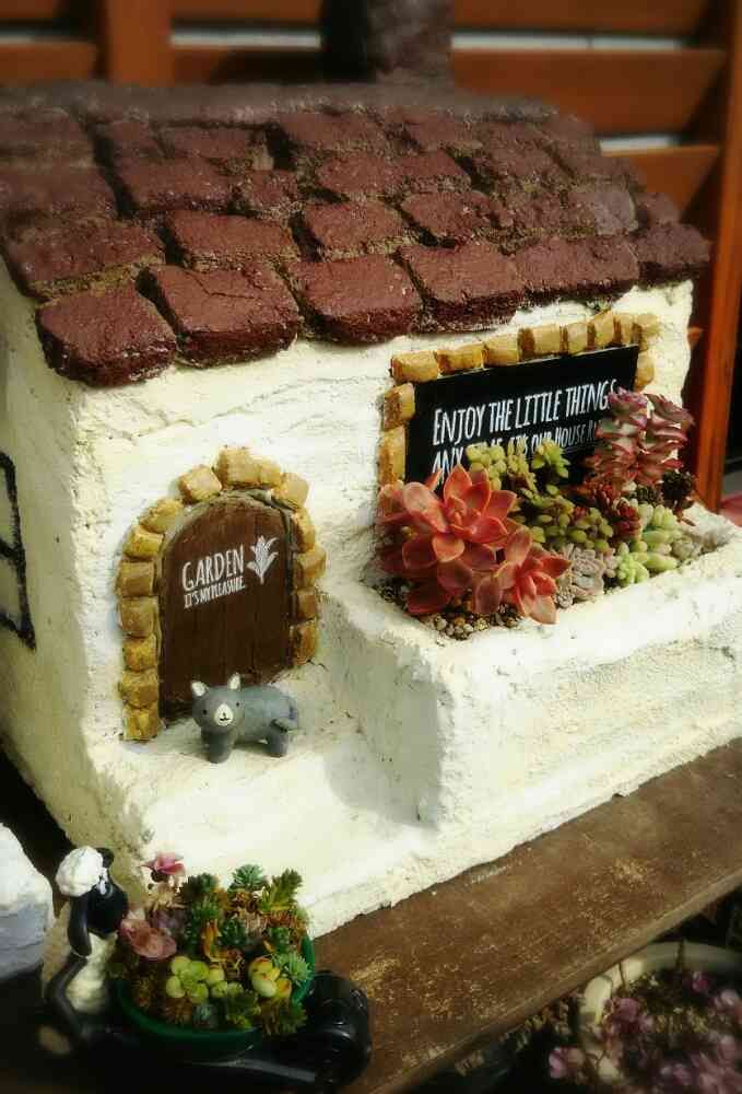 一昨年初めて庭の雑貨屋さんでモルタル造形を見て、自分でも作ってみたいと自己流で作ってくれたモノなんです😄