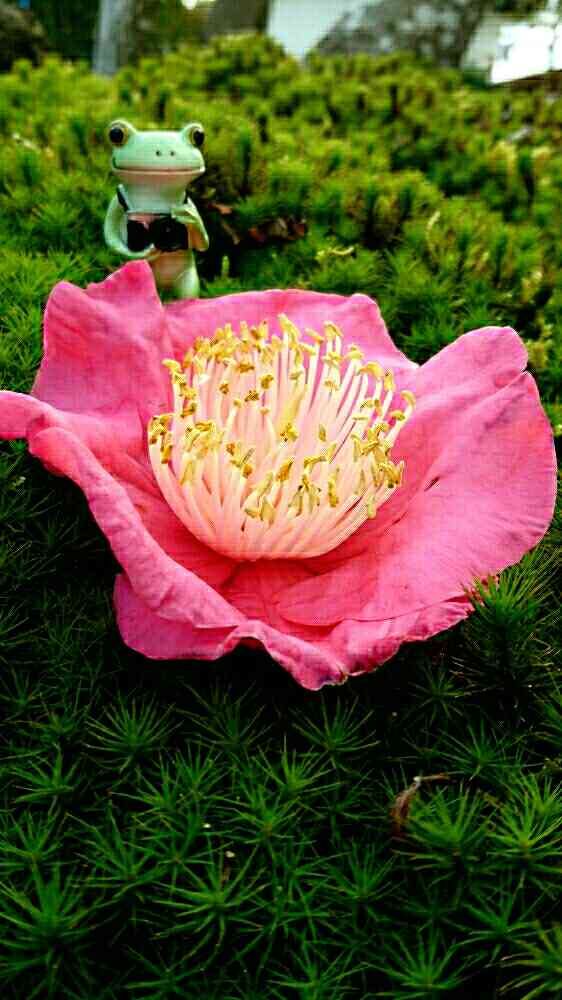 カエル君、可愛い椿のモデル見つけたんだね(^^♪ボブさんはカメラ助手♪