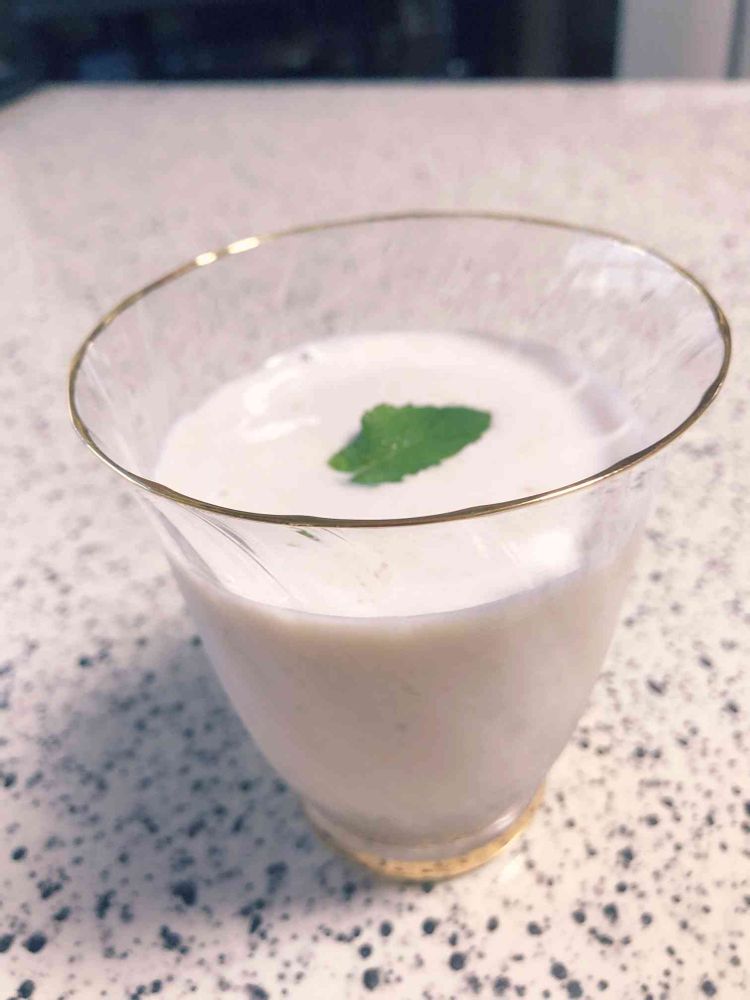 凍った輪切りのバナナと牛乳少々をミキシングして、バナナシェイクを作りました
