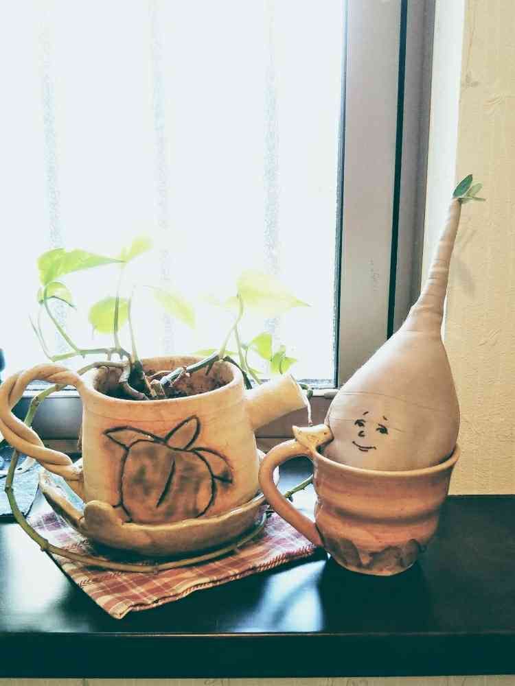 ポトスの植木鉢も私の作品。
