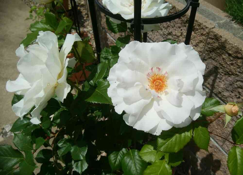 マーガレット・メリルは少し古いイギリスのバラと聞いていますが、赤いしべが美しく、花びらの白もきれで、いいバラだと思います。🙂
