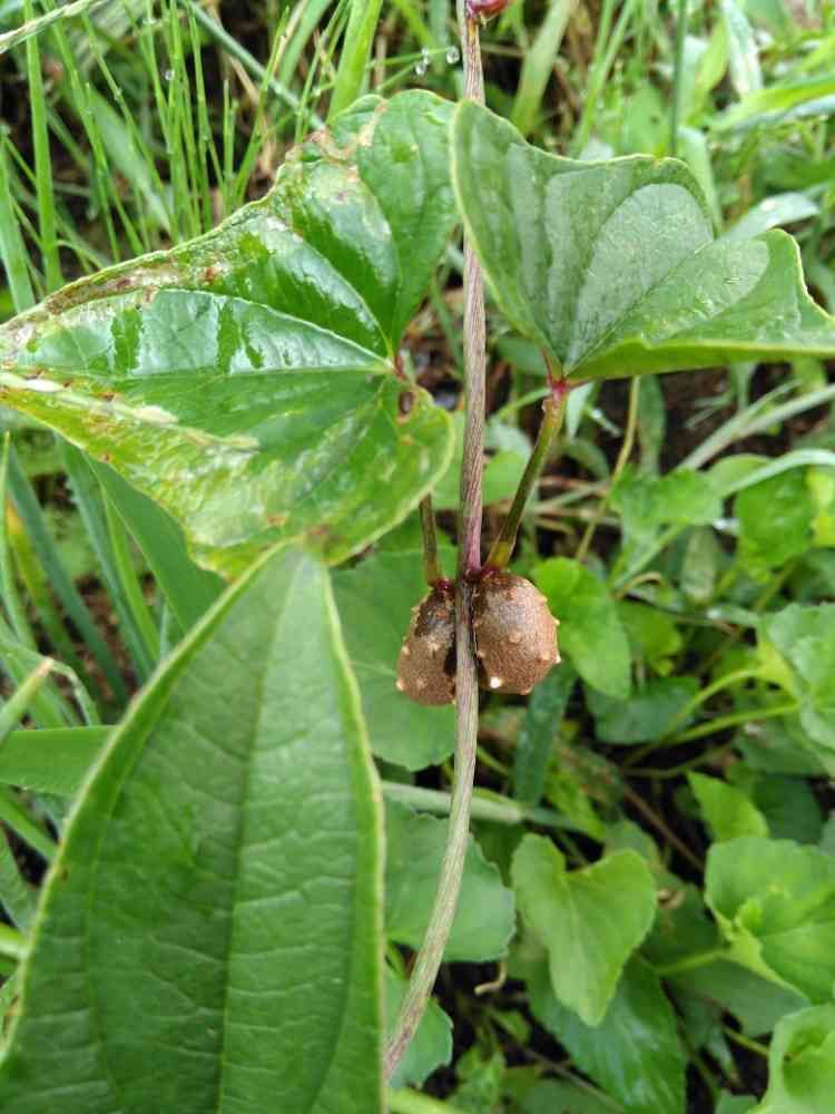 庭の木に蔓が絡まり今はホトトギスに絡まってます。集めて取れば良いのですがつい抜いて少しなので生えないように踏んづけてました。取ってから抜きますよ〜 からまるから庭には要らないわ