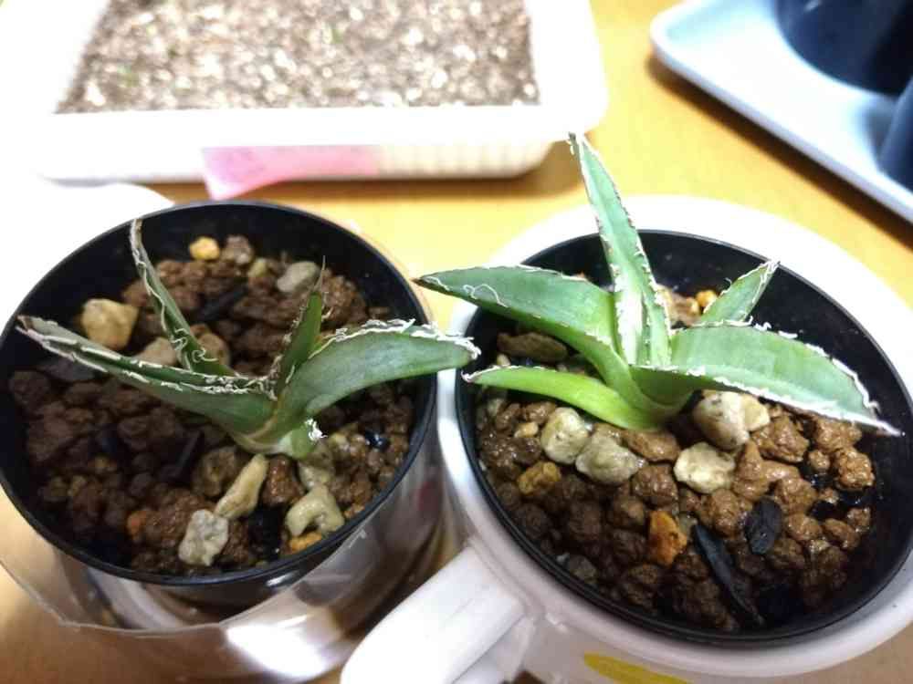 アガベは水のあげすぎは良くないみたいだけど、子株のうちは、たっぷりあげても良いのかな❓😁