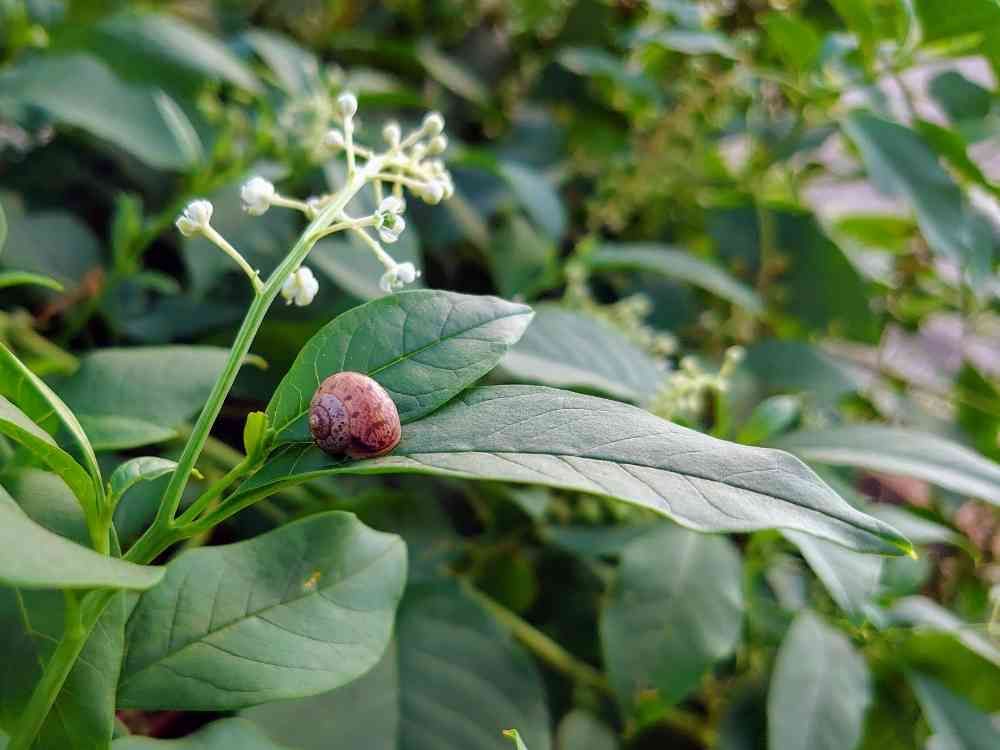 ヨウシュヤマゴボウの葉の上にカタツムリ🐌