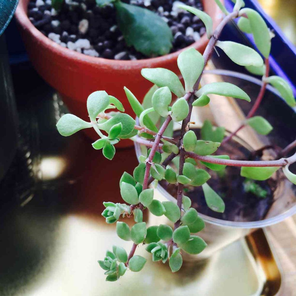 庭先で増え続けてるのをちぎって水栽培してみました!よーく見るとこんなかわいかったんだぁと、新たな発見(^o^)