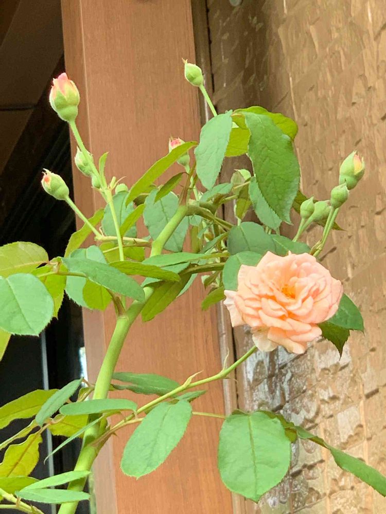 何日も雨続きで庭に目が行ってなかったら、バフビューティ、1輪開花❣️