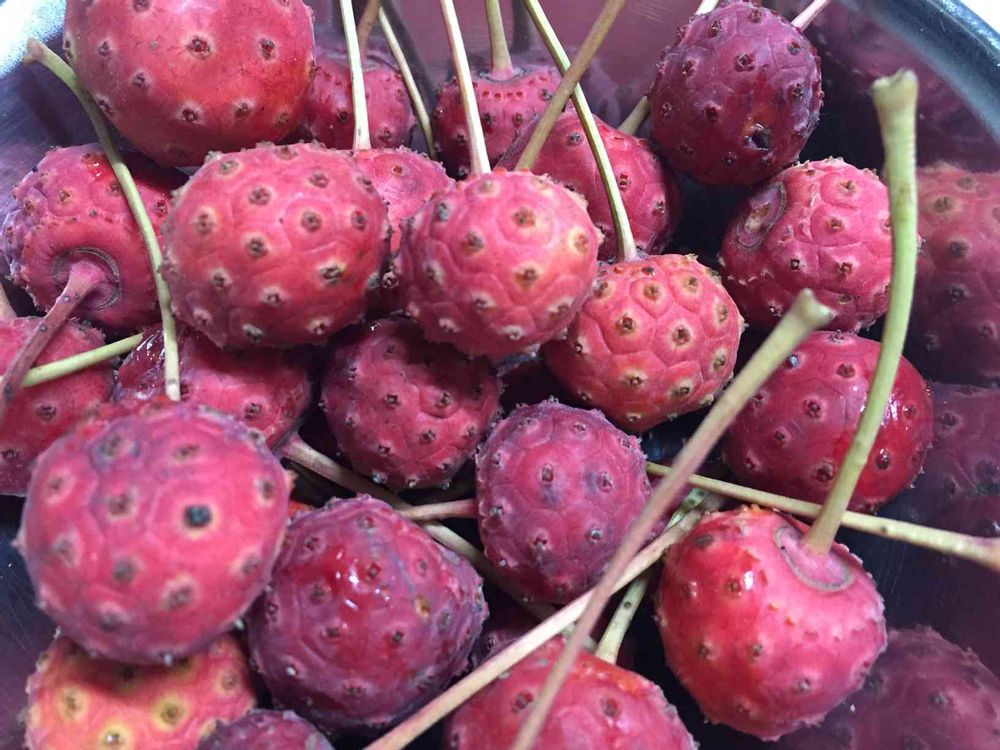 是非作ってみて(*^^*)生で食べるとわかるけど皮がちょっとざらっとして口ざわりなの。それに中には種も入ってるし、だから濾してジャムにしてね。今年探すとまだ実成ってるかもよ🎶