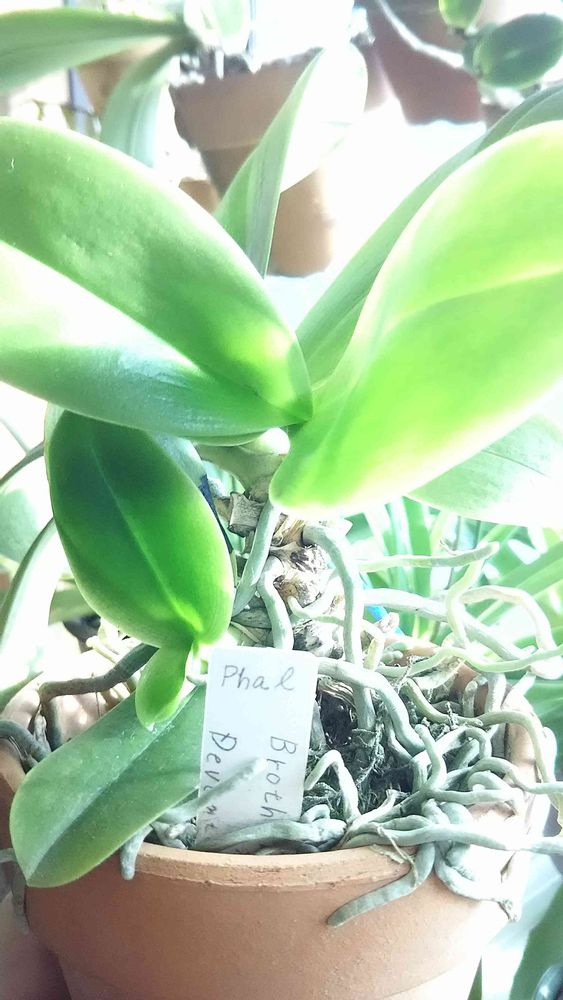 胡蝶蘭の交配種で脇芽(3株)発生しています。
