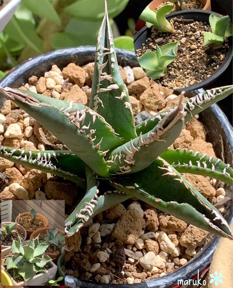 アガベ達はお水切ってる上に太陽もいっぱい当たって雨も振り込む場所にいますが何とか頑張ってます☺️