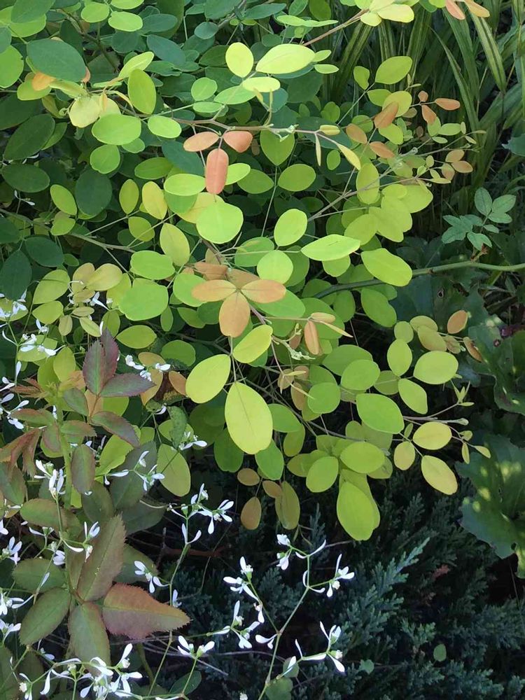 朱金ハギ 赤っぽい新葉が薄い黄色に変化していきます💕 先っちょにピンクが咲きますが、葉っぱを楽しみたくて、伸びる毎に切るのであまり花はつきません(^_^)