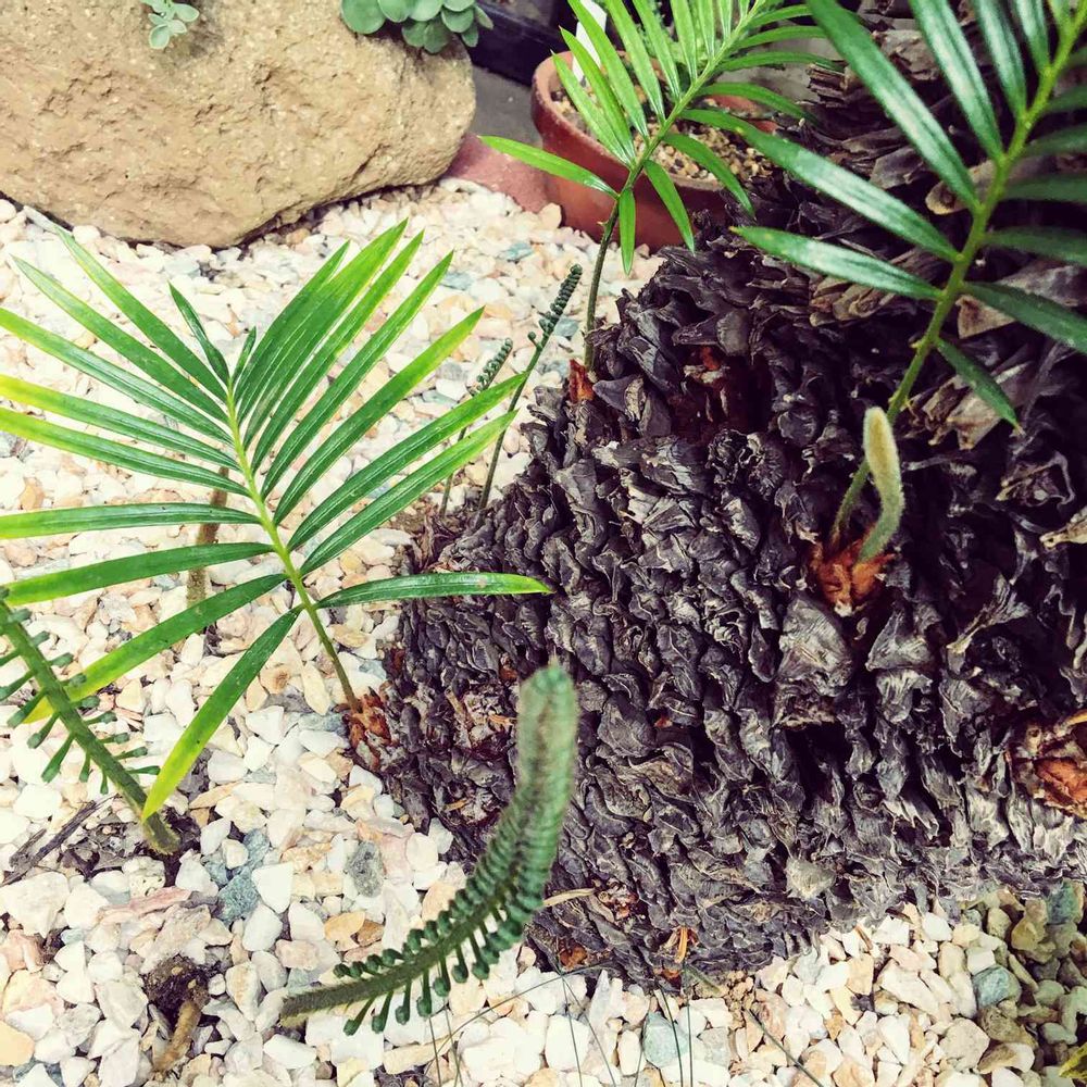 ソテツの幹とその周りから、脇芽がものすごく出ています。