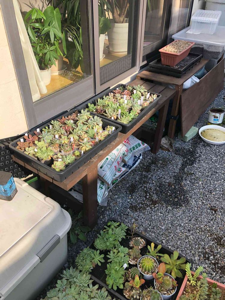 俺の一服場所だったんだけど、タバコやめてからは人も座らず、実生苗の雨ざらし試験場所として、多肉座らせてます(;一_一)