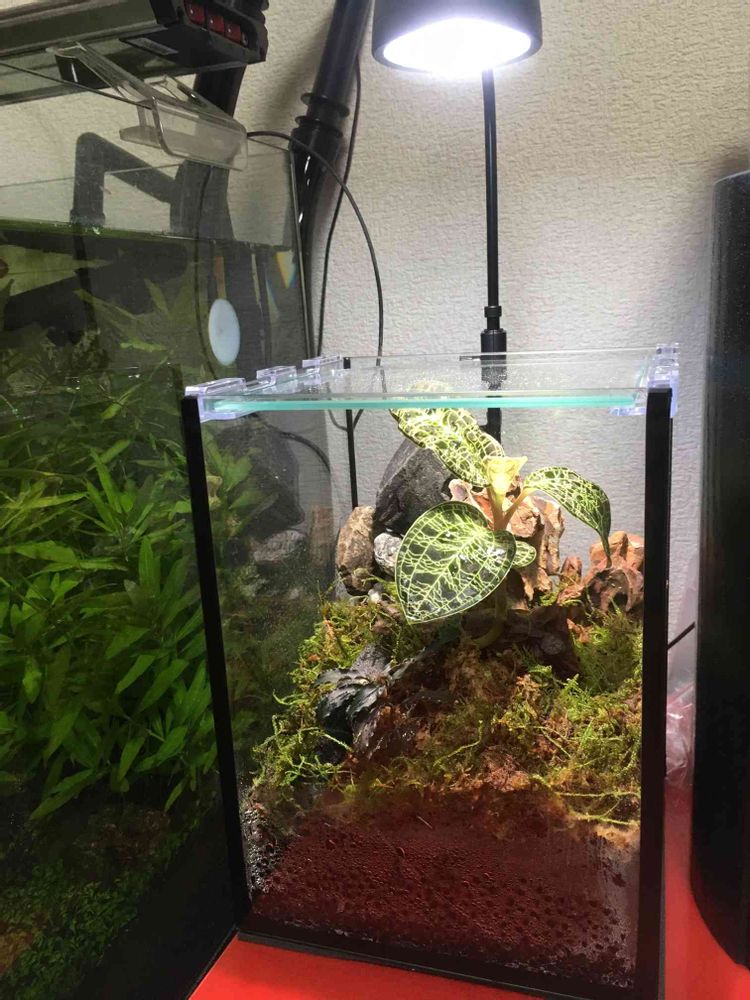 土を盛りすぎたから早くも上蓋に葉がつきそう。