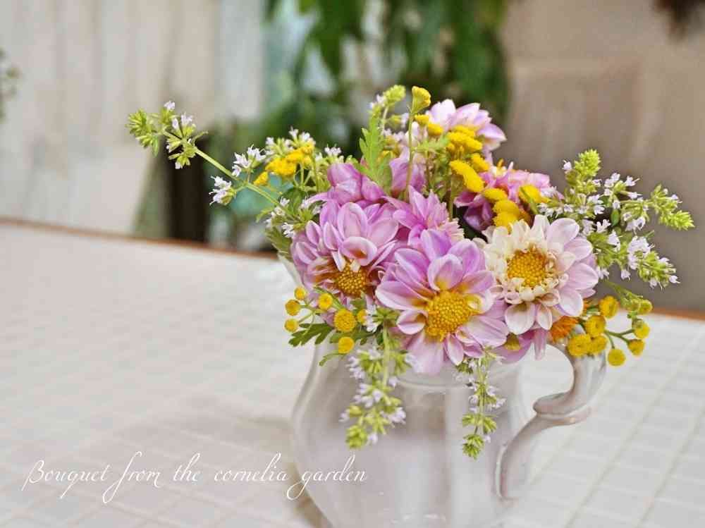 台風前に、ノッポになったダリアをカットして、ブーケにしてみました♡ॢ*‧˚