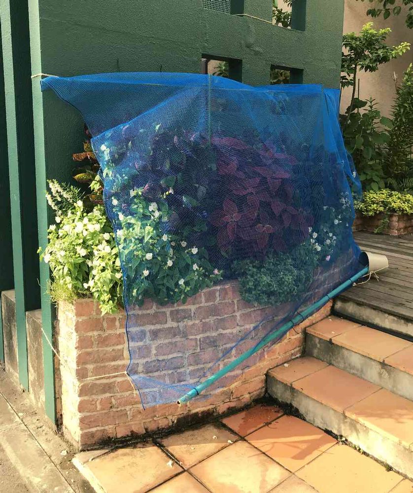 去年の9月3日にも台風がやって来ました。防風網をかぶせましたが 下を固定出来なかったので、結局コリウスはほとんど折れました。また塩害も受け、薔薇やユーカリや木などが茶色くなってしまいました。
