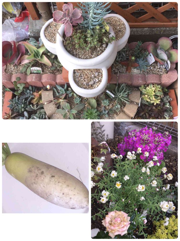 お花の 園にも お水をあげてたら 隣りのご主人様から 大根を 頂いた。