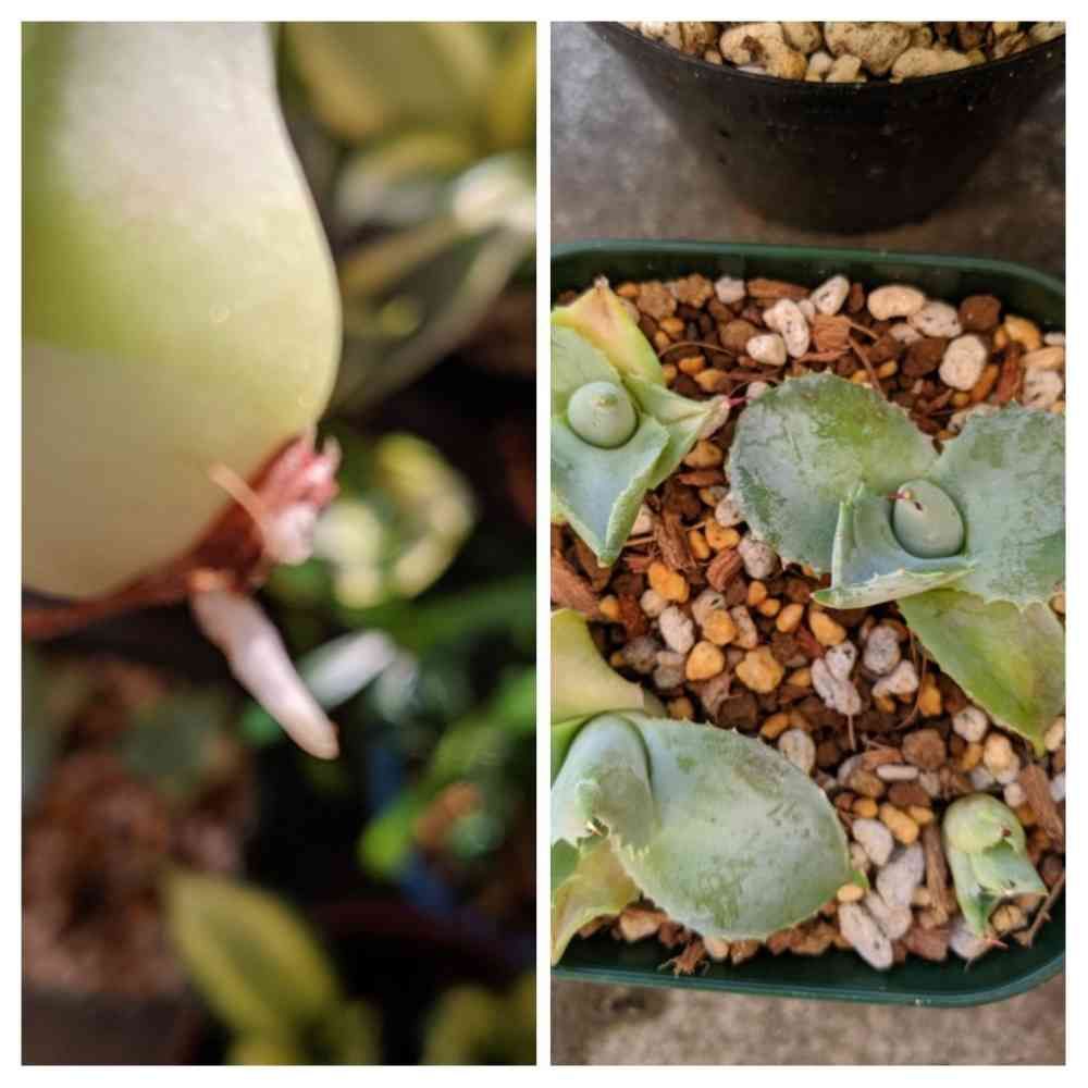 バラバラに分解したアガベポタトラムの根無しっ子の1つから根が~