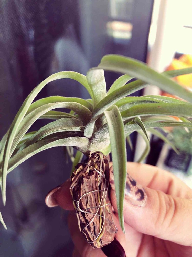 エアプランツ 着生挑戦第1号の1カ月後はこんな感じです👍根がちゃんと張ってきて葉も生き生きしてぐんぐん伸びて来た気が…