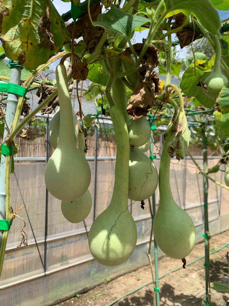 かんぴょうは、ウリ科のユウガオだったと思います。このpicは、つる首瓢箪です!
